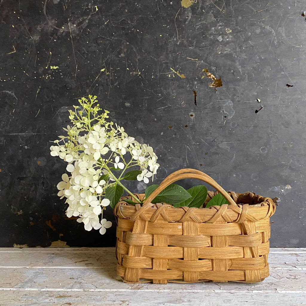 Small Handmade Split Oak Gathering Basket - Rectangular Shape with Handle 10x6