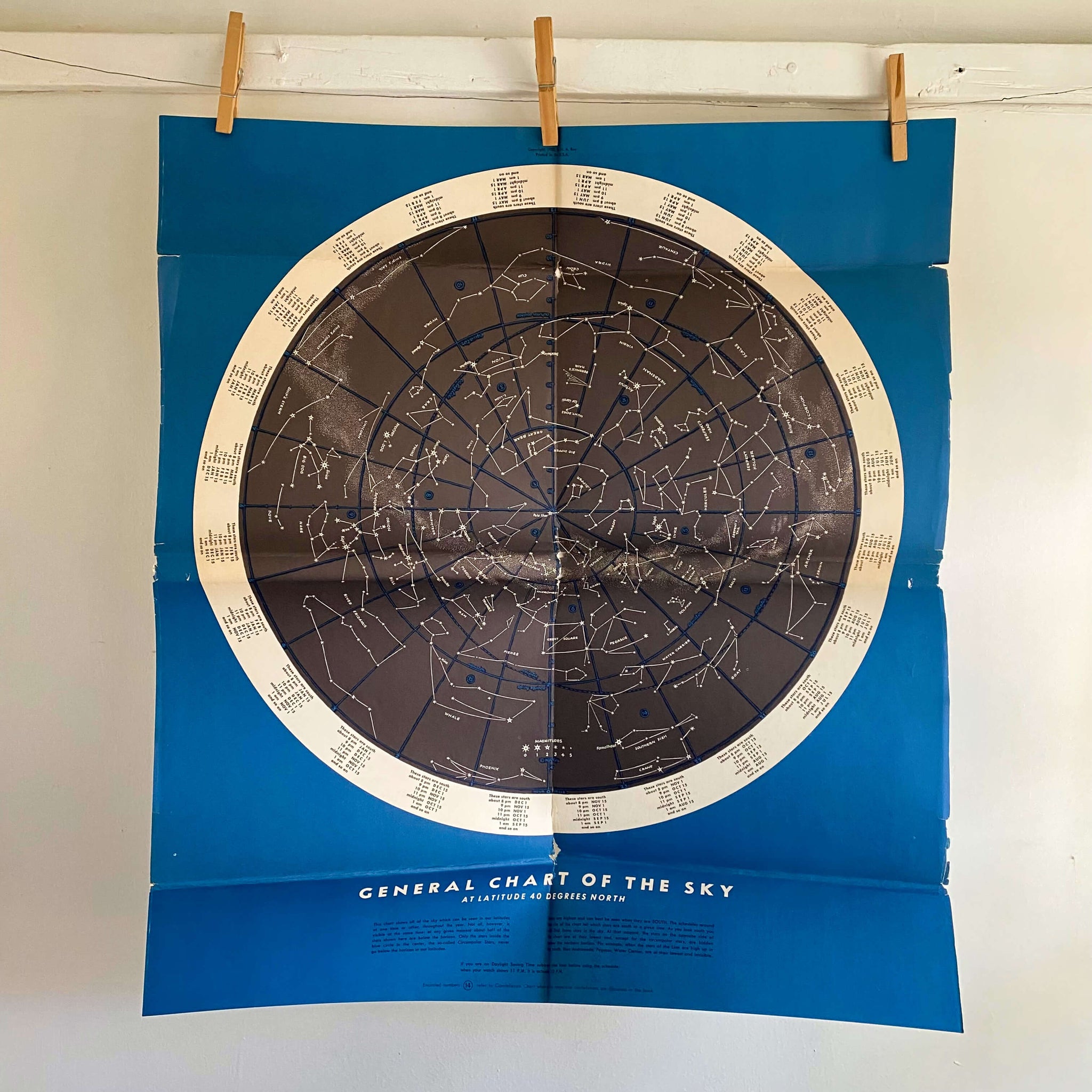To highlight the year-round opportunities star-gazing provides, H.A. also incorporated a wall-size chart of the night sky on the inside of the folded dust jacket, which could be tacked up on on a wall or framed for quick reference. Again, what was originally intended for beginner star-seekers quickly became wall decor for schools, science labs, bedrooms, family rooms, astronomy buildings and nature centers.