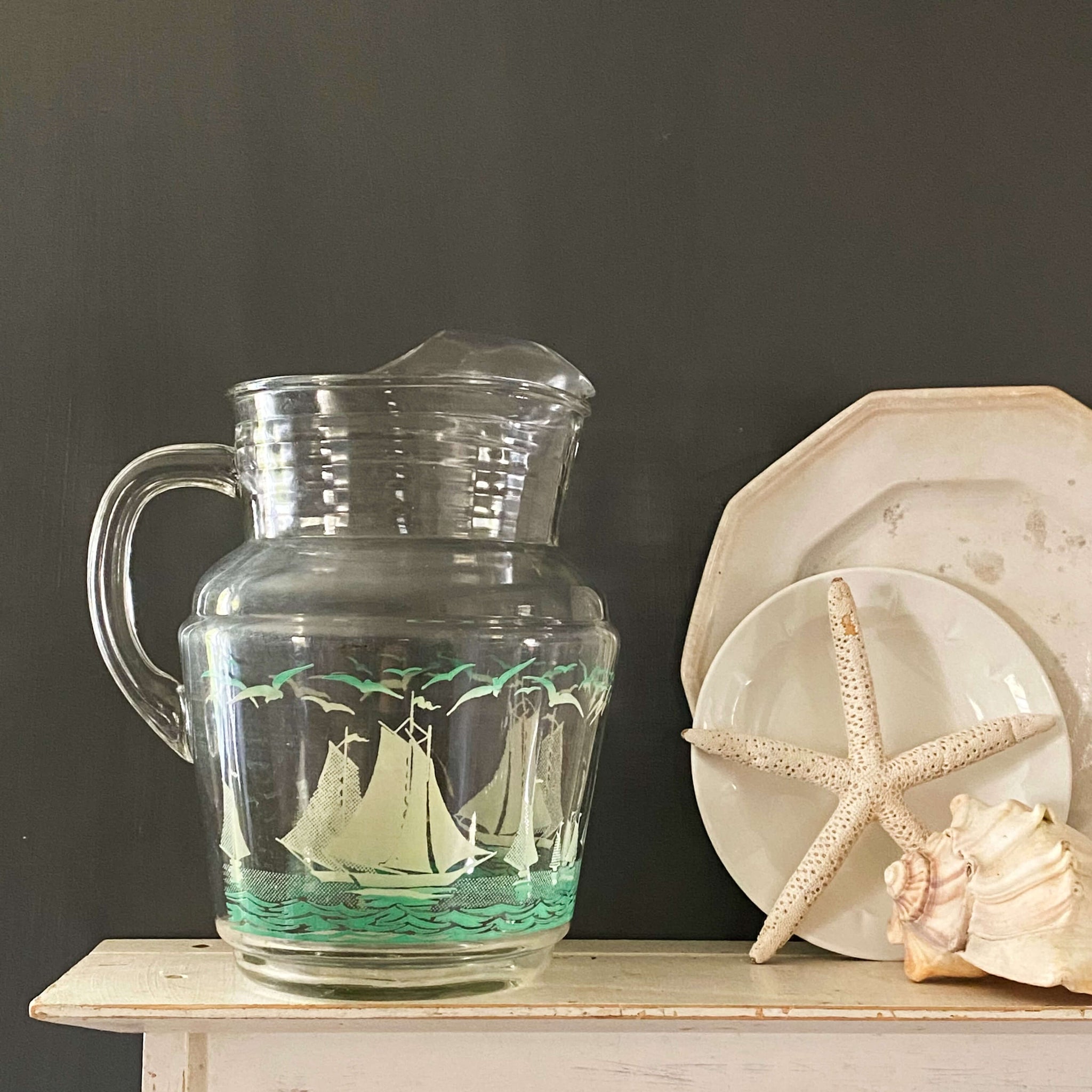 Set sail on the high seas, vintage style, with this nautical glass pitcher!
